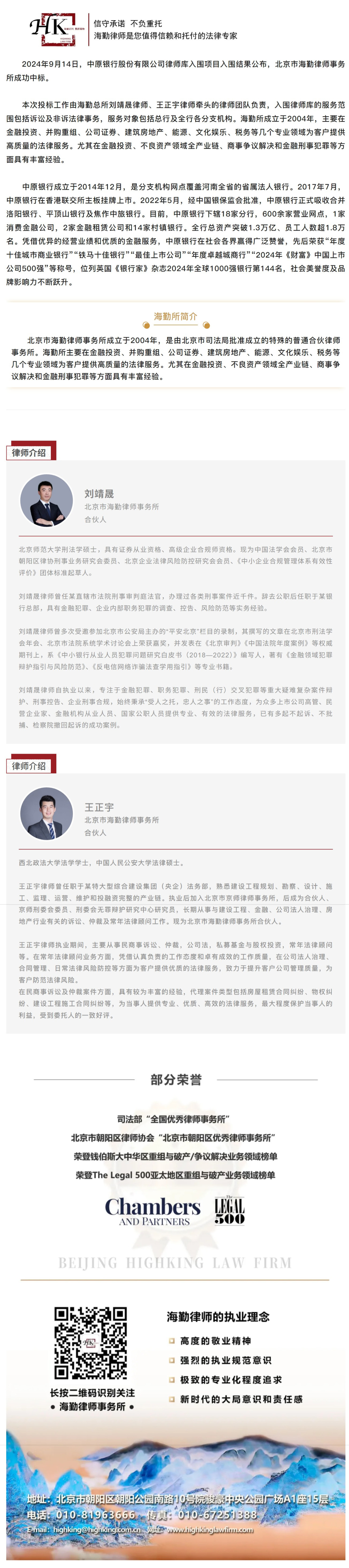 海勤动态 | 海勤所入围中原银行股份有限公司律师库