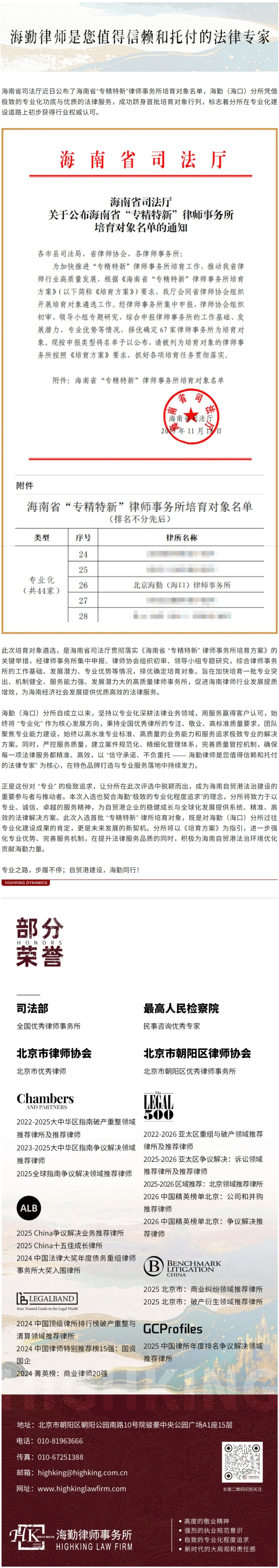 海勤动态 | 海口分所荣获海南省“专精特新”律所培育认定